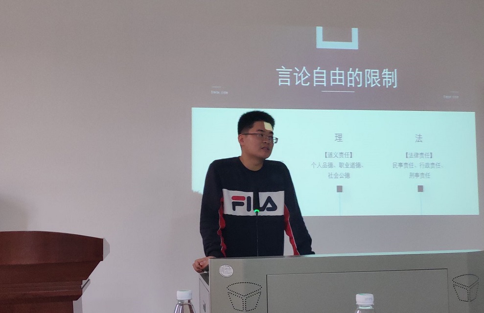 李政洋师兄首先从字面上对言论自由进行解释,指出《宪法》表明公民享有言论自由的权利并说明将言论自由作为一项权利的原因,并说明言论自由尽管广泛但是一种相对的自由需要遵守社会规则和法律规则,接着主讲人将言论按作用不同将其分为私人言论和公共言论分别对其展开详尽阐述,不时举出例子使听众更易理解,最后从情、理、法角度出发即从情感、道义、法律三方面对言论自由的限制进行了高度概括,为我们带来精彩的有关言论的普法教育,同学们听后深有感触和教育。徐圣老师对李政洋博士的精彩报告做详尽点评。