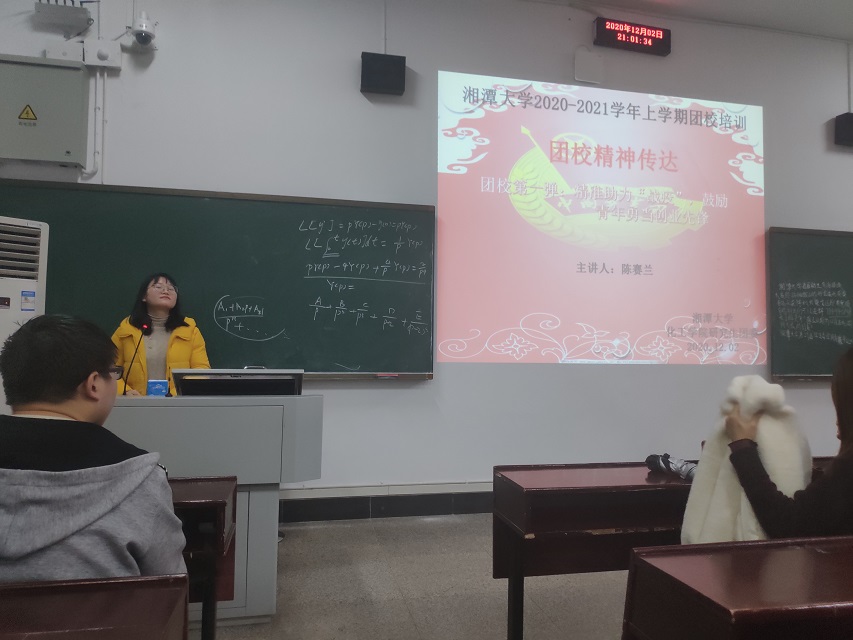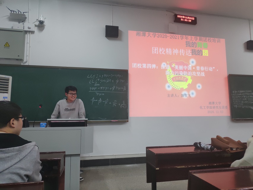 为广泛深入开展党的十九大及系列精神宣传教育,深化中国特色社会主义和中国梦宣传教育,贯彻学习习近平总书记系列重要讲话精神,进一步进行团内机制改革,落实党中央关于群团工作部署,在《中央团校改革方案》指导下,结合共青团中央《共青团2020年工作重点》文件精神,化工学院十二月二日在逸夫楼开展了湘潭大学2020-2021学年上学期团校培训会议,化工学院研究生2020级化学工程班团支部全体成员都进行了深入学习,进一步加强了团支部工作建设,促进了团组织的成熟发展,为共青团工作今后的发展打下了坚实的基础。