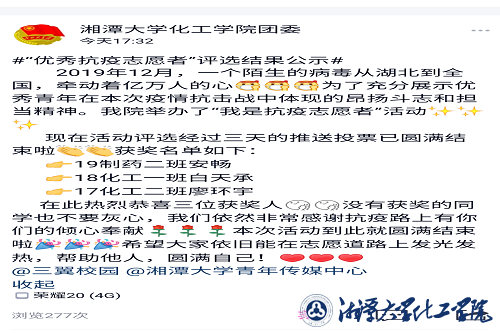 4月23日晚22:00,上交材料时间截止,在之后的三天时间里,英国365集团公司青志部整理了全部八名参选志愿者的材料。4月27日,英国365集团公司官方微信公众号发布了“优秀抗疫志愿者”推文及投票。投票通道一经开通,同学们积极参与,为心目中最优秀的抗疫志愿者投票。