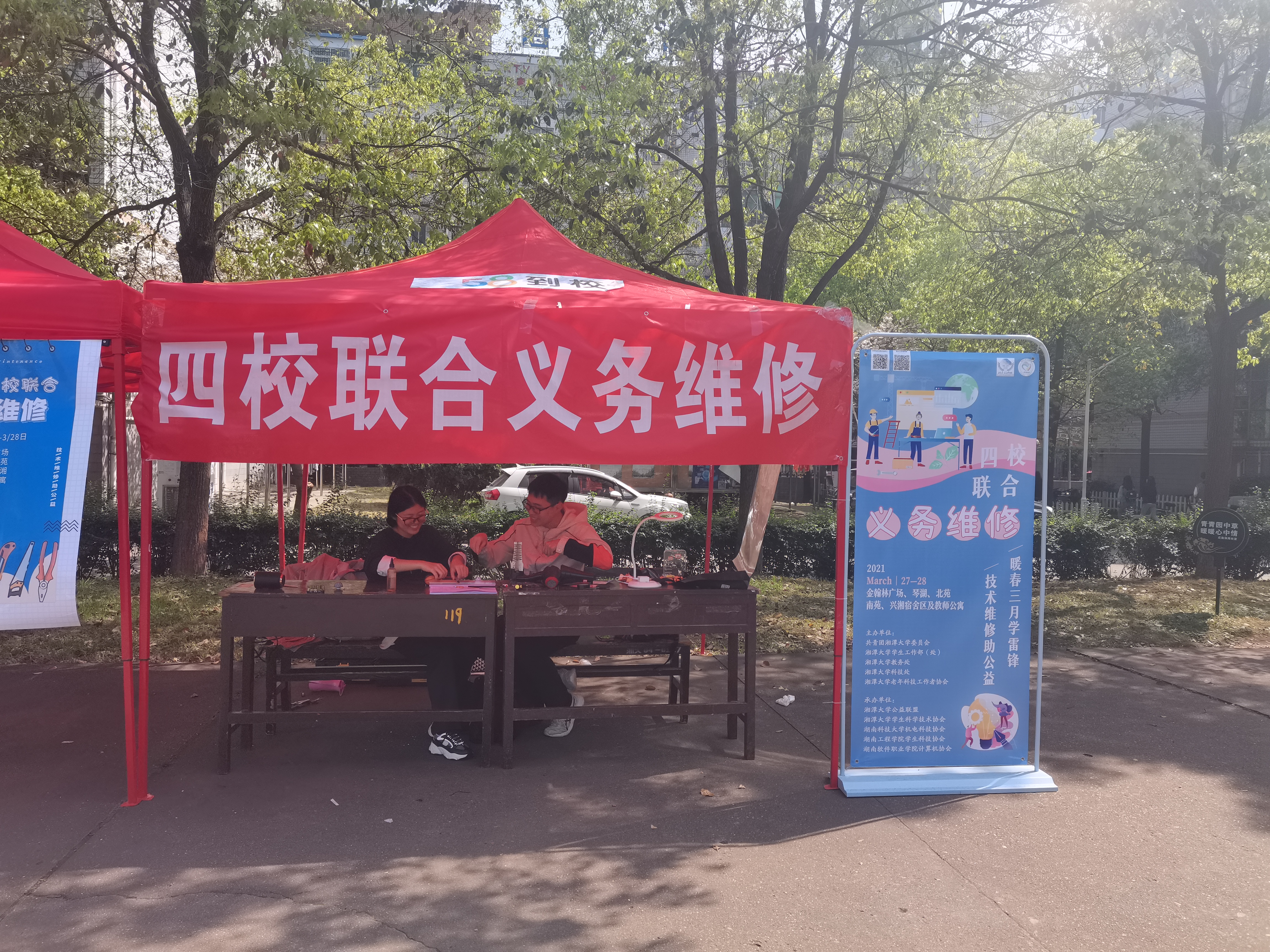 暖春三月学雷锋,技术维修助公益。四校联合义务维修活动时间为2021年3月27到28日早上8:00至18:00,该活动由湘潭大学、湖南科技大学、湖南工程学院、湖南软件职业学院联合举办。