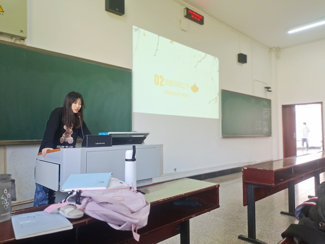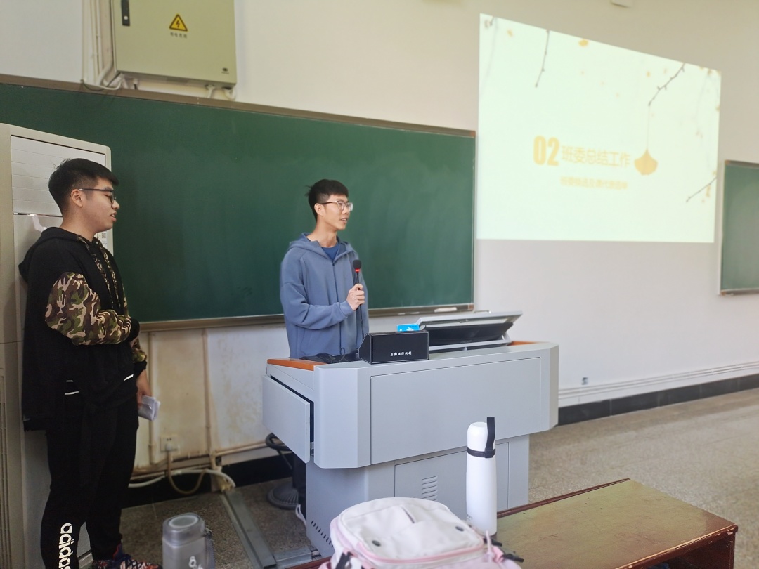 随后,班委轮流走向讲台,对上学期的工作进行了总结,分析了工作中出现的一些问题,并提出解决方案。同时也对本学期的工作做出计划,表达了希望把班级建设得更好的愿望。