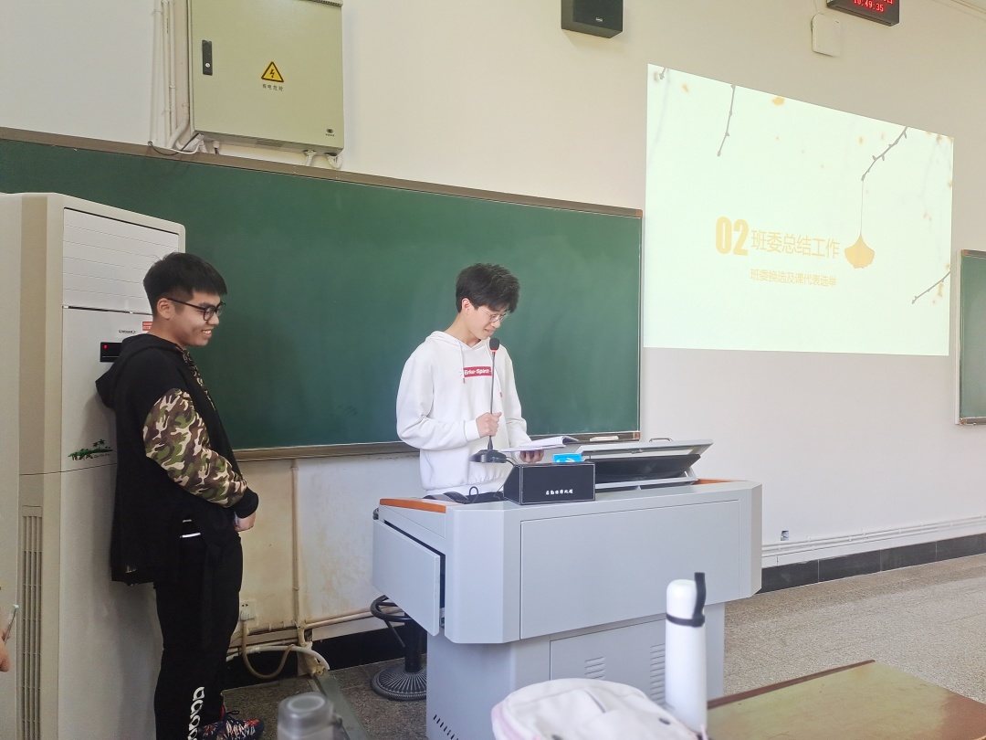 为了更好地管理班团,为同学服务,本次班会开展了竞选班委活动。同学们积极踊跃地参与竞选,上台演讲。在经过班级同学公平公正地投票后,选举了覃胤泽为新一任班长,刘轩宇为心理委员,王思敏、谭镇清、曾祥丽分别为英语、化学、高数课代表。这些同学的加入为班委团注入了新的血液,他们也将为班级建设而奋斗。