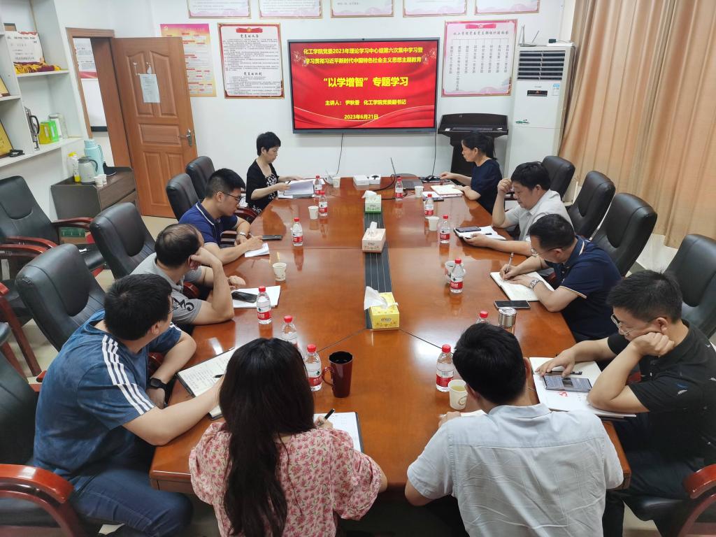 6月21日上午,化工学院党委理论学习中心组开展第六次理论学习暨学习贯彻习近平新时代中国特色社会主义思想主题教育“以学增智”专题学习研讨,院党委委员、院领导、系主任、办公室主任、团委书记、教职工支部书记、专职组织员参加。院党委副书记尹秋香主讲,院党委书记陈非文主持。