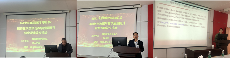 10月21日上午,由教师教学发展中心、化工学院共同承办的湘潭大学第四期教学高端论坛——课程教学改革与教学质量提升暨金课建设交流会在化学化工大楼A208成功举办,此次论坛由化工学院教学副院长王威燕教授主持,浙江省万人计划教学名师,全国石油和化工教育教学名师、中国工程教育专业认证现场考查专家、浙江工业大学艾宁教授作为主讲专家,教师教学发展中心和化工学院全体教师及其他院系部分老师和学生参与本次论坛。