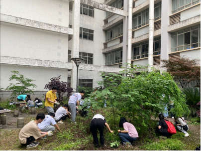 (制药工程专业学生拔草、移除杂树情景)