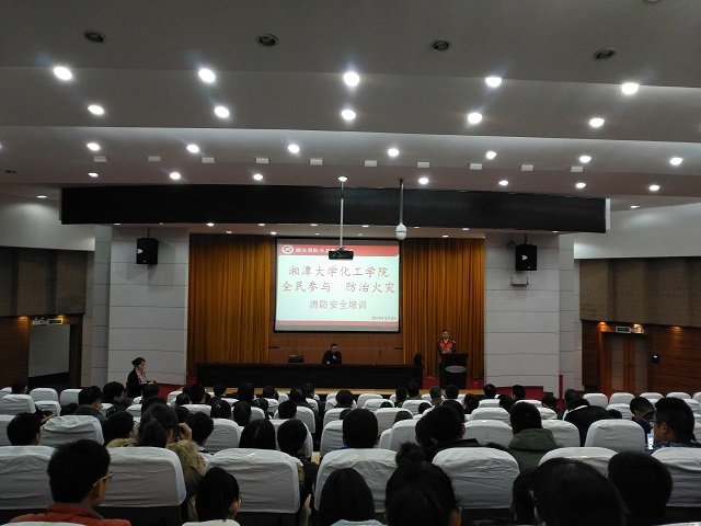 为进一步加强化工学院全体师生的消防安全意识,全力普及消防安全知识,推进英国365集团公司的消防安全宣传工作,2019年3月5日下午三点,在逸夫楼一报告厅进行了化工学院全院师生的消防安全知识培训讲座。此次讲座是由化工学院游奎一副院长主持,主讲教官是湘安消防支队的任教官。