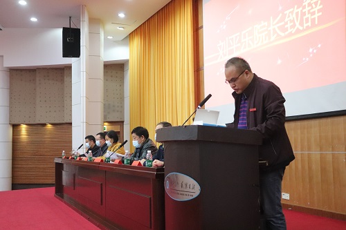 视频播放完毕,刘平乐院长为开学典礼致辞。他向所有2020级新生表示最衷心的祝贺与最热烈的欢迎,并寄予大家三点期望:志存高远、修身养德、博学笃行。他希望新生能够树立远大理想、培养高尚品德、努力践履所学,成为有抱负、有学识、有使命感的新时代接班人。刘院长还为大家展示了湘潭大学的优美环境,并对化工学院的基本情况作了简要介绍。