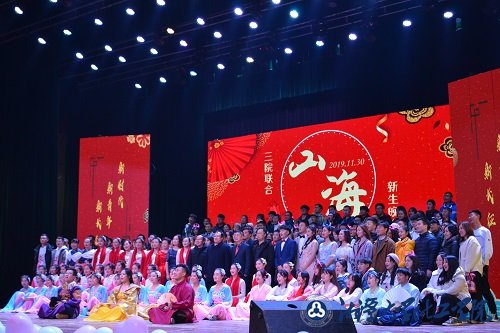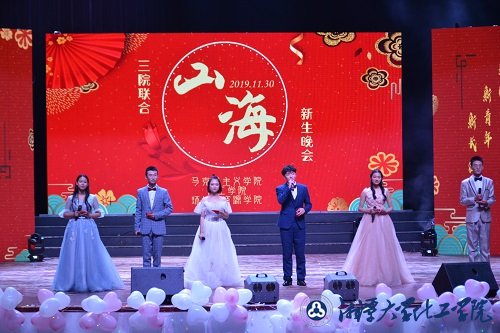 由马克思主义学院、化工学院、环境与资源学院联合举办的“山海——新时代新青年新长征”三院联合新生晚会,于11月30日晚7时在俱乐部正式拉开帷幕。出席此次活动的领导有湘潭大学副校长刘建平;学生工作部(处)部长谢罗奇、副部长田良富;马克思主义学院、环境与资源学院的部分领导;化工学院党委书记陈非文,党委副书记周春初,团委书记刘宇谦;三院新生班主任。