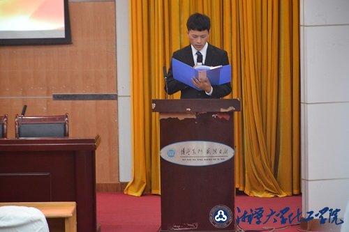 会议伊始,主持人沈孝娟致开场词。随后,化工学院第十八届团委学生会团委第一副书记徐贻佳作《第十八届团委学生会工作汇报》。在报告中,他对第十八届团委学生工作作出了中肯的总结。接着,开始受聘仪式,化工学院学生干部依次上台接受了嘉宾颁发的聘书并合影留念。随后,由化工学院第十九届团委学生会主席廖环宇进行工作展望。她在展望中强调作为一名学生干部应有的品质,每一位学生干部都应不断学习,不忘初心,砥砺前行。她表示会努力做好学生工作,把团委学生会越办越好,赢得了全场师生的一致好评。