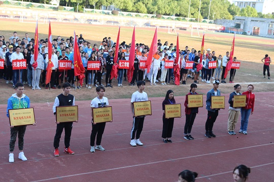 首先,吴彬彬同志宣布了学生运动会道德风尚奖评选结果。化工学院获得此奖,由化工学院体育部部长颜伟上台领奖并与颁奖嘉宾合影留念。接着,赛事主管陈文胜同志宣布了获得女子团体总分前八名、男子总分前八名、“湘潭大学阳光体育铜奖”、“湘潭大学阳光体育银奖”、“湘潭大学阳光体育金奖”五种奖项的学院。,化工学院荣获女子团体总分第八名。“湘潭大学阳光体育金奖”由公共管理学院和商学院夺得。