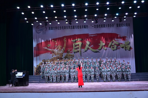 19个学院演唱完毕,湘潭大学大学生艺术团声乐部给我们带来了一首《唱支山歌给党听》;副校长刘建平教授的《四渡赤水出奇兵》,唱出了革命精气神,唱出了几代人的自豪。