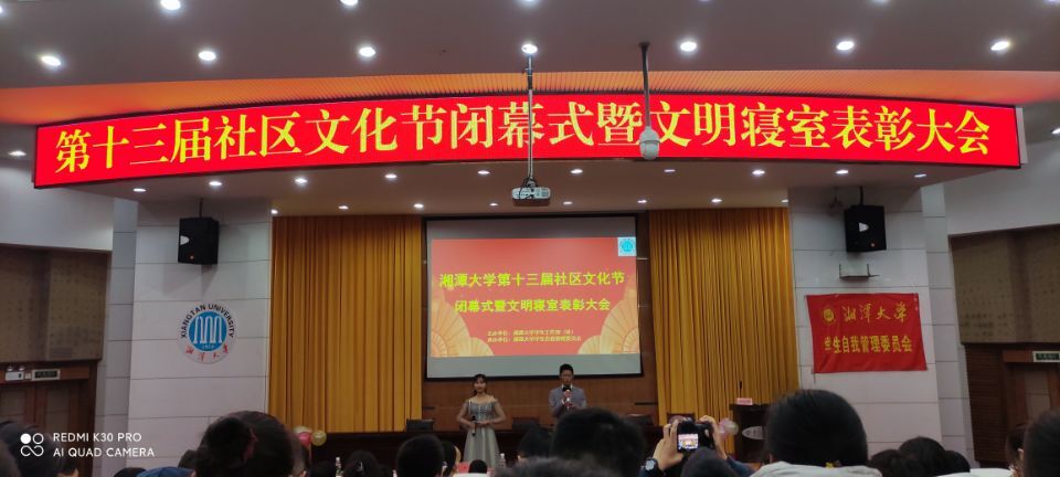 12月15日下午,湘潭大学第十三届社区文化节闭幕式暨文明寝室表彰大会于逸夫楼第一报告厅召开。