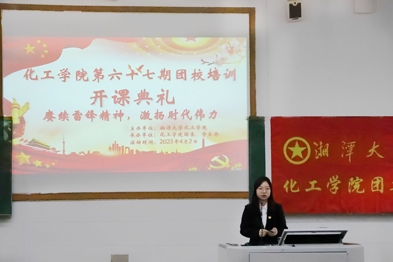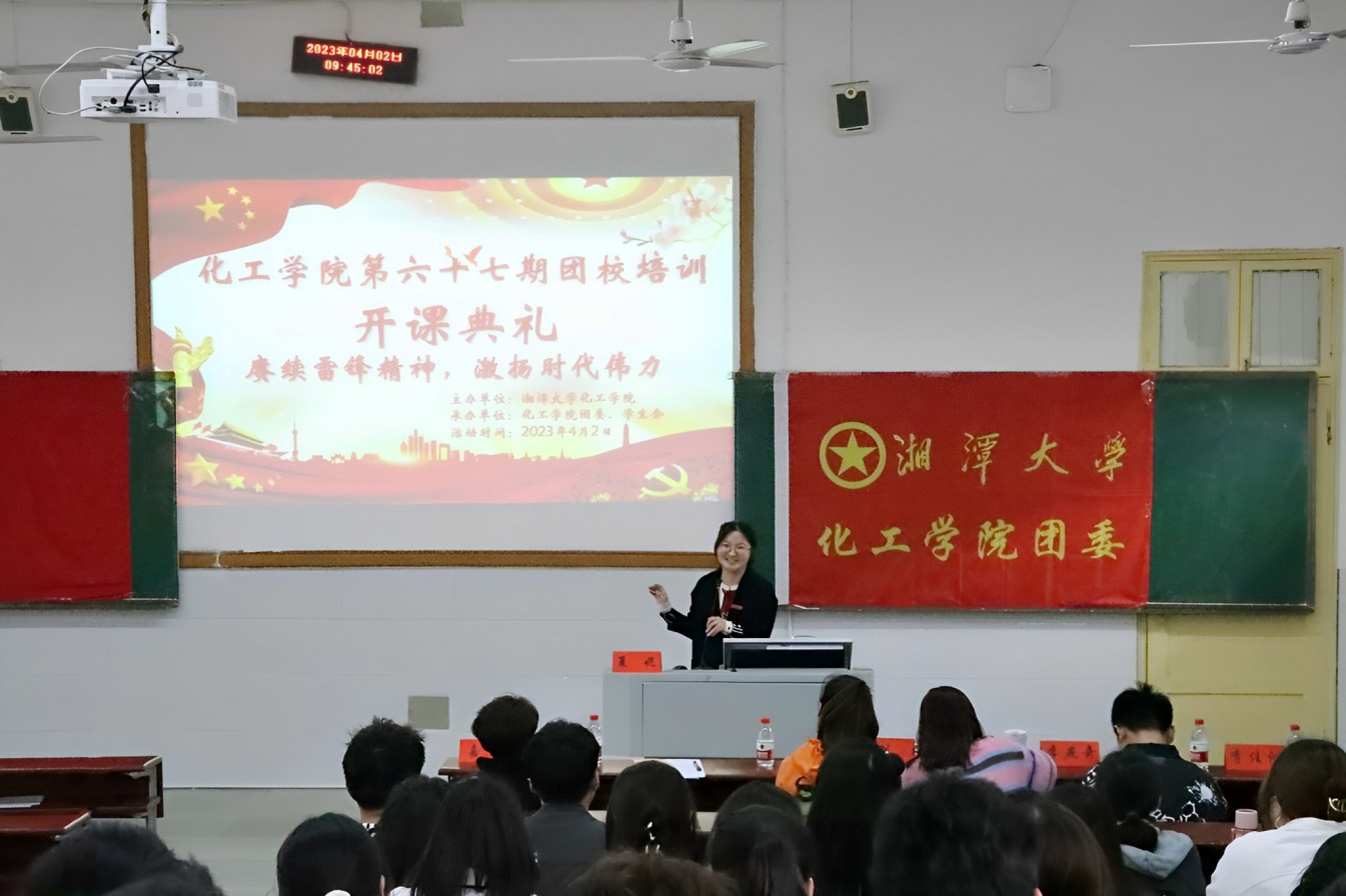 4月2日上午,化工学院第六十七期团校培训开课典礼暨第一次理论授课于南山第四阶梯教室开展,本次团校课特邀化工学院本科生第一党支部刘志豪为79名学员进行理论授课,化工学院团委书记夏妮,团委、学生会主席团参加此次会议。