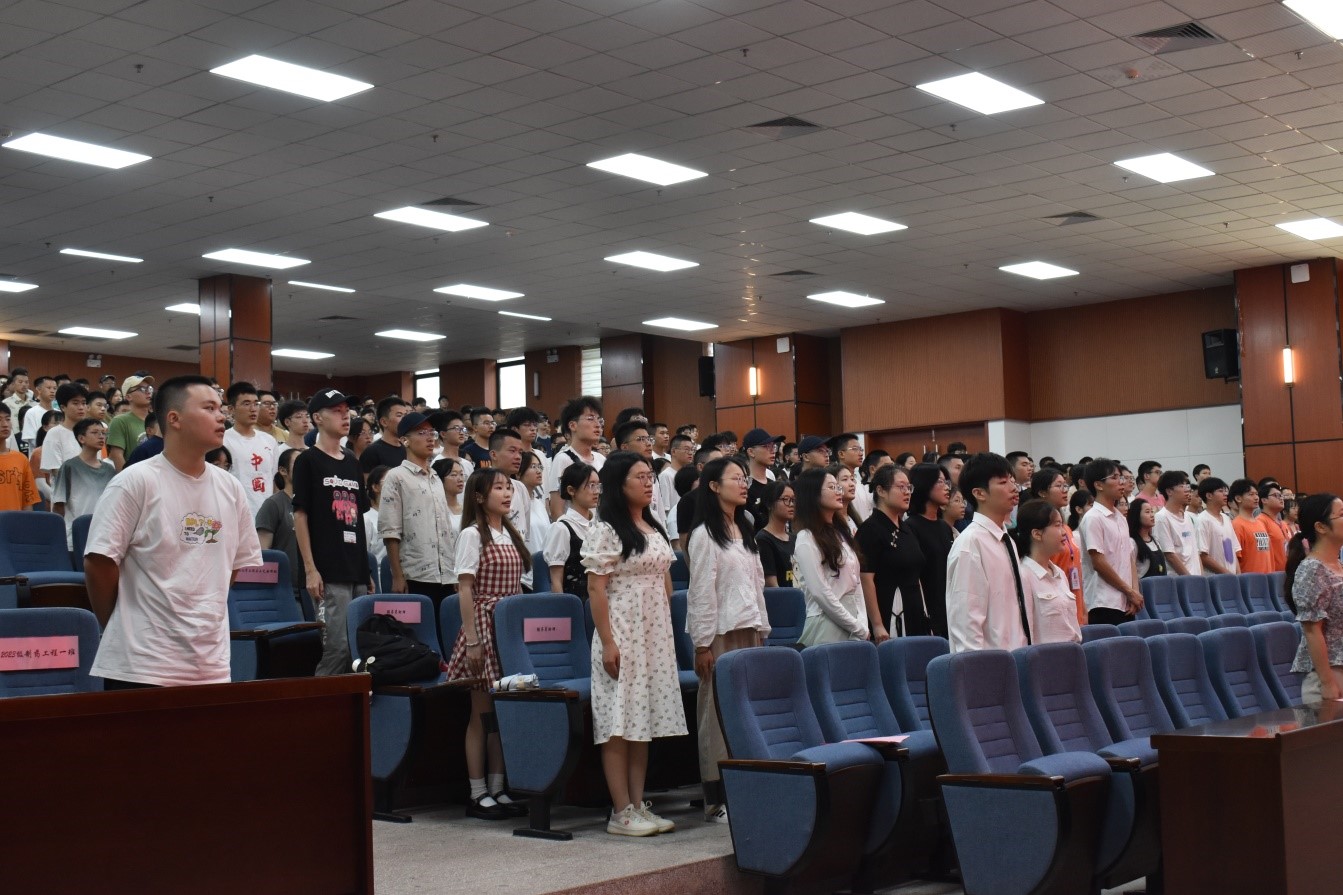 “起来!不愿做奴隶的人们……”9月16日,研究生院报告厅国歌奏响,化工学院2023级新生入学大会在此举行,大会分为新生入学大会与校友讲座两个阶段,全体院领导、2023级班主任、学工老师及552名研究生和本科新生参加此次大会。