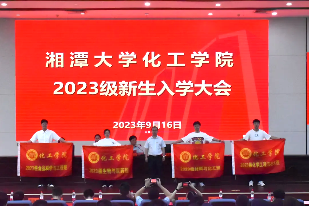 “时代各有不同,青春一脉相传。”2022级材料与化工专业研究生代表曹哲恒同学结合自身经历,分享有关学习与生活的建议;新生代表陈双禧同学展现出新一代化工学子对未来的期望与向往。随后,院领导依次为各班授旗,鲜艳的旗帜在手上展开,它代表着学院的荣誉、团结和使命,也承载着化工学子对知识的追求、对成长的渴望和对社会责任的担当。
