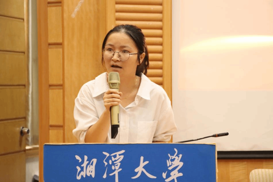2021级化学工程与工艺4班、化工学院团委第二副书记肖如作为优秀学生干部代表发言,以“扎根伟人故里,努力把学院办得更好更有特色”为题向大家分享自己的成长故事。从何为扎根,为何扎根,如何扎根三个方面讲解,以学长的角度为迷茫的大一同学传经送宝。