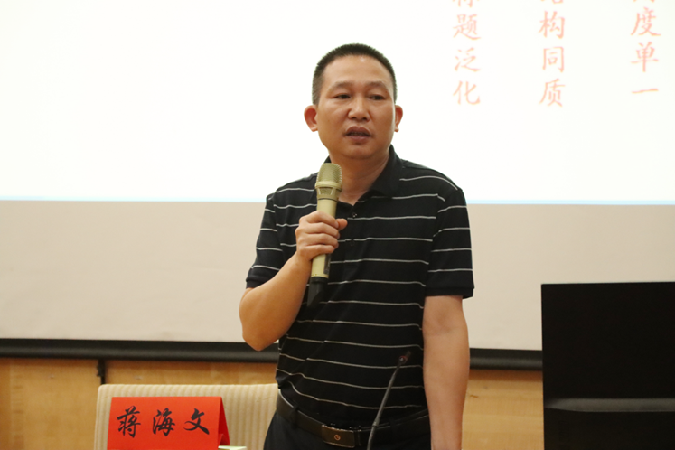 蒋海文老师以“校园新闻写作的现实困境与优化策略”为题授课,他为同学们简单梳理了新闻概念,指出校园新闻写作的现实困境并以自己的新闻作例提出优化策略,向同学们提出:传神贴切的标题,精炼鲜活的导语和与众不同的角度可以使新闻更出彩。蒋海文表示生活处处是新闻,希望同学们在新闻写作上能够取得更进一步的成效。