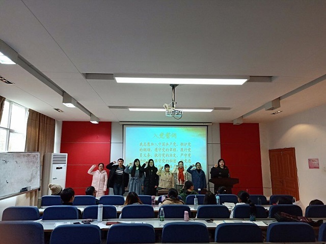 会议开始,各位发展对象首先陈述了个人思想、学习、生活及工作表现方面的情况,之后各位党员同志提出各自的意见,入党介绍人宣读介绍意见。最后支部书记喻春燕宣读大会决议并带领新吸收的党员掷地有声的宣读了入党誓词。