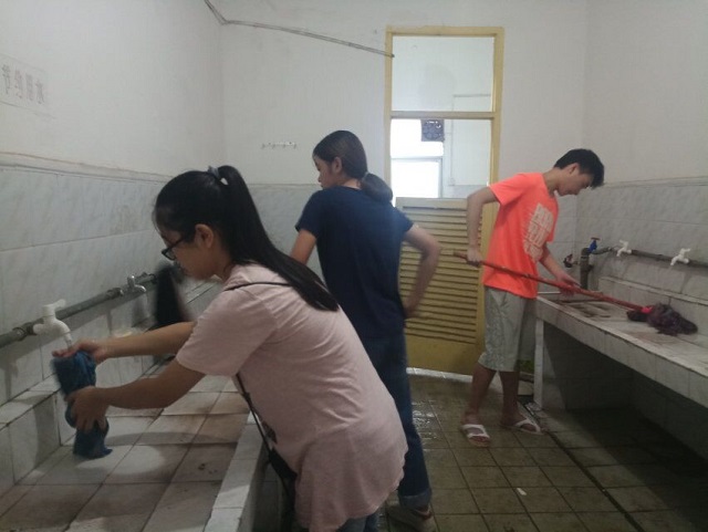 化工学院上下齐心协力清除寝室灰尘,为2018级新生敞开一扇洁净温暖的大学之门。