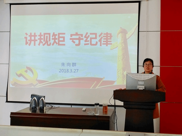 为以崭新的精神面貌开展新学期的工作,3月27日下午2:30在化工大楼A208会议室,院党委书记朱向群同志围绕“讲规矩,守纪律”为主要内容,以加强全院教职工意识形态建设为切入点,为全院教职工上了一堂生动的党课。