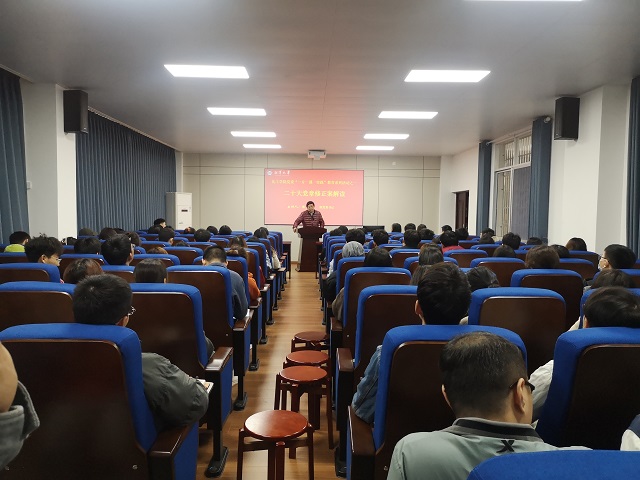 为深入学习贯彻二十大党章修正案,切实把全员的思想和行动统一到党的二十大精神上来,11月15日,英国365集团公司在化工楼A208开展化工院党委“一片一课实践”教育系列活动,化工学院党委书记陈非文以《二十大党章修正案解读》为主题,为学院师生党员做了党的二十大精神宣讲。