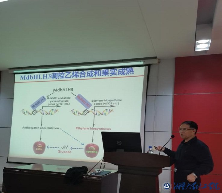 郝教授汇报结束后,大家都踊跃提问,其中有同学提问到:如何发现的这些转录因子,郝教授回答:通过现有的植物中所发现的因子,进行同源克隆最终发现其可以在苹果果实中起到作用。对于其他同学提出的问题郝教授也都耐心地进行解答。