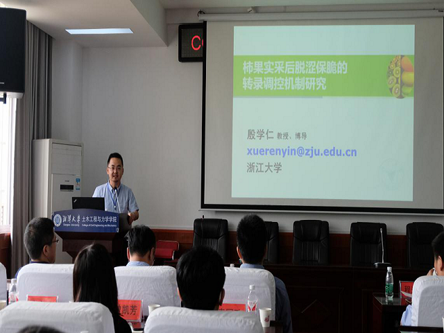 同时进行的食品科学与工程的讲座,我们很荣幸的邀请到了五位名师,分别是程运江教授关于柑橘采后品质保持的生物学基础研究的报告,朱鸿亮教授关于RNA编辑因子ORRM4调控番茄果实成熟启动的机制的报告,李博强老师关于果蔬中的“隐形杀手”的报告,殷学仁教授关于“柿果实采后脱涩保脆的转录调控机制研究”和杨宝老师关于植物多糖结构与功能的报告,这五位老师的报告深入了我们所学的专业,讲座的最后,大家同样抓住难得的机会向各位老师虚心请教有关的问题,现场气氛也是十分活跃。