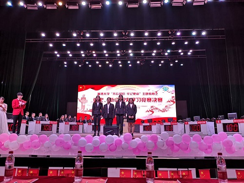 10月12日下午3时,湘潭大学党史、新中国史学习竞赛决赛于湘潭大学俱乐部举行。莅临本次决赛的嘉宾有湘潭大学副校长刘建平以及其他各院的领导。共有8支队伍晋级本次决赛,其中,化工学院的参赛队伍由郭一卉、陈双、王欣瑶、史姣雯四人组成。