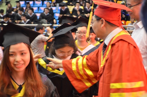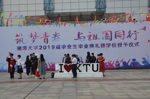 6月19日上午10时,湘潭大学2019届毕业生毕业典礼于新体育馆二楼举行。出席本次典礼的有学校党委书记黄云清教授,校长周益春教授,副校长宁建名教授、董康明教授、廖永安教授、刘建平教授、刘长青教授等。