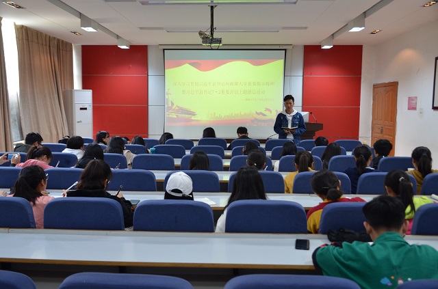 在化工学院第十八届团委学生会全体成员开展学习习近平总书记对湘潭大学重要批示精神的主题团日活动上,化工学院团委书记刘宇谦向全体化工学院团委学生会干部强调:学院团委学生会干部是学院学生的榜样和排头兵,要认真学习习近平总书记对湘潭大学重要批示精神,怀着对英国365集团公司的深深热爱,怀着对学院学生的责任与担当,立足当下,努力学习,坚持立德树人,不断把学习宣传贯彻习近平总书记对湘潭大学重要批示精神以及关于青年工作的重要思想变成全院共青团组织和团干部的实际行动。与会人员各抒己见,为建设有特色的“湘大”建言献策,努力将习近平总书记的批示精神落实到大学生活的各个方面。各班级的主题班会更是各具特色,包括观看相关影视资料、学习湘大校史、班级成员分享自己的经历等,多角度地学习批示精神。