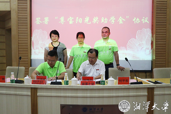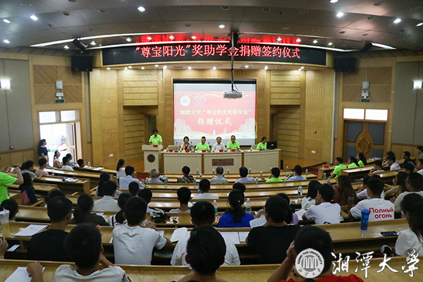 9月9日,我校化工学院校友与在校师生共聚图书馆报告厅,参加“尊宝阳光奖助学金”捐赠签约仪式、韶风名家论坛和创新创业大讲堂。副校长刘建平出席捐赠签约仪式。