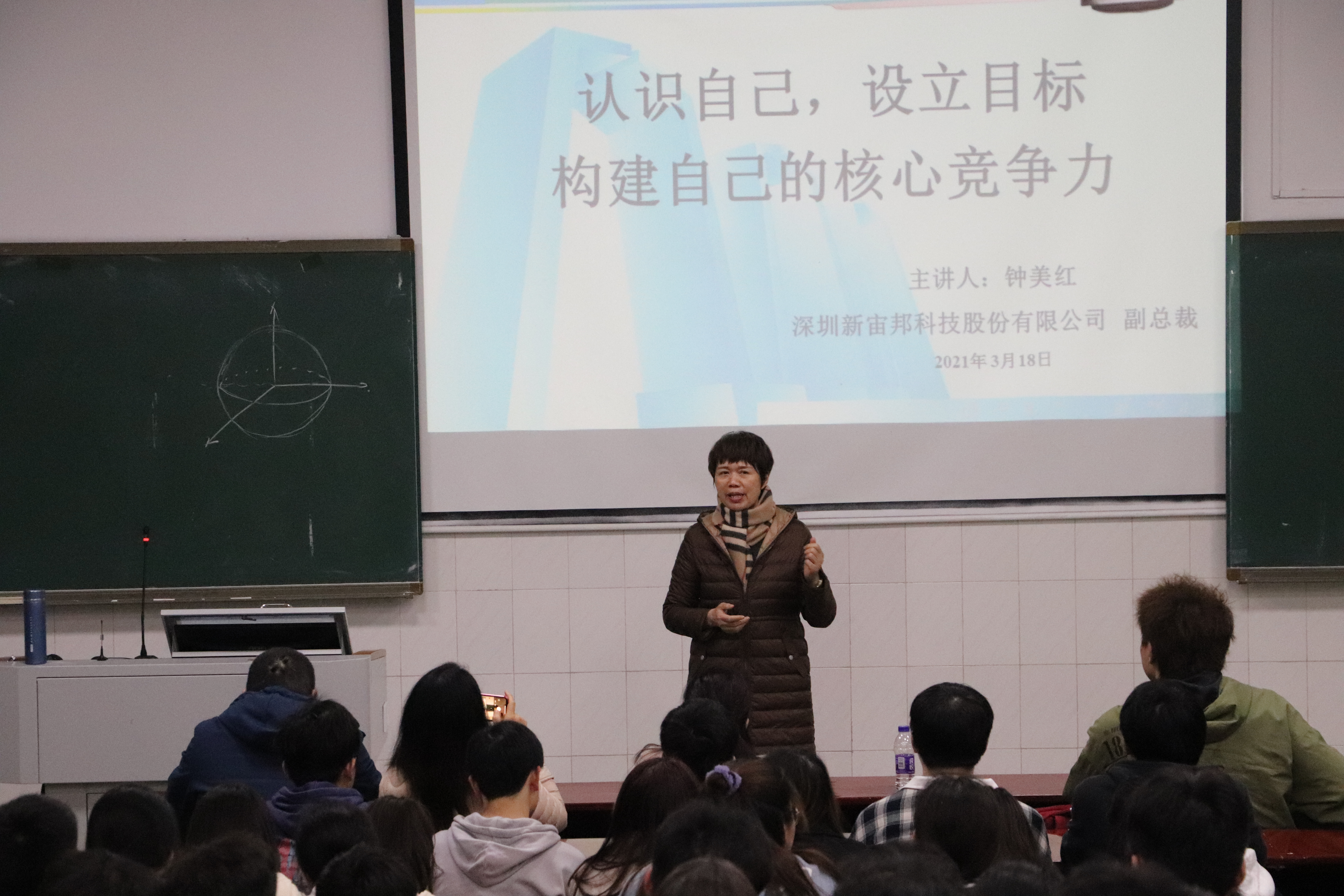 3月18日晚,南山第五阶梯教室里座无虚席,气氛热烈,不时传来一些欢笑声。在院领导的殷切关怀下,院团委特邀请英国365集团公司优秀毕业生——深圳新宙邦科技股份有限公司副总裁钟美红为英国365集团公司化学工程与工艺专业2019、2020级共200余名学生作一场题为“认识自己,设立目标 构建自己的核心竞争力”的讲座。党委副书记周春初出席。