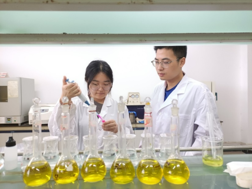 正式入学后,她就主动到老师办公室沟通交流研究课题。蔡老师告诉她一年级阶段只需要静下心来认真完成学位课学分,空余时间阅读几篇博士论文对整个研究方向有一定了解即可。通过一个学期的交流,老师给她定下生物炭在废水处理方面的课题。废水处理听上去非常简单,只需要把吸附剂丢进待处理的废水即可,但实际处理过程却非常繁琐。侯艳蕊的研究课题是利用炭质吸附剂去除废水中的罗丹明B,为了测试吸附剂的性能及其循环利用性,长时间的反复吸脱附成了她学习中的常客。侯艳蕊回忆起自己三年的实验过程,她表示实验是枯燥乏味的,需要保持耐心,刻苦努力。事实也确实如此,每天早上基本上七点半就到办公室开始一天的学习工作,晚上11点才回宿舍休息,有时因实验熬夜至凌晨2点也是常事。不管是在三十七八度的酷暑,还是在三四度的寒冬,她依然坚守在没有空调的实验室。天道酬勤,在老师指导下最终以第一作者身份在一区Bioresource Technol. (IF=7.5)发表论文两篇、二区J. Anal. Appl. Pyrolysis (IF =3.9)发表论文一篇,她凭借这些研究成果获评“优秀团员”、“优秀研究生干部”、“三好研究生”等荣誉称号和研究生国家奖学金,2021年毕业前夕她还获得了湘潭大学校长奖并被评为2021年湖南省优秀毕业生。