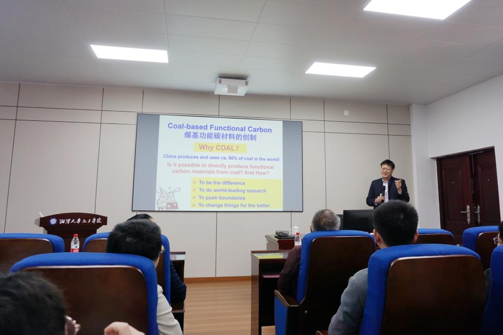 邱介山教授以“先进功能碳材料的创制:以炭‘治’碳、前途无限”为主题,首先为老师同学们介绍创制功能碳材料(Functional Carbon Materials, FCM)的时代背景及其具有的广阔发展前景,对FCM智造的技术策略进行归纳总结,提出了“多维碳材料工程”的新概念,结合FCM在能量存储与转换、多相催化等技术领域的应用范例,从分子科学、表界面化学及宏观架构工程三个层面阐述调控FCM结构与性能的技术策略,重点讨论介绍智能材料化工的发展趋势和面临的挑战。
