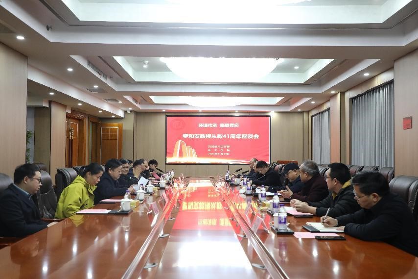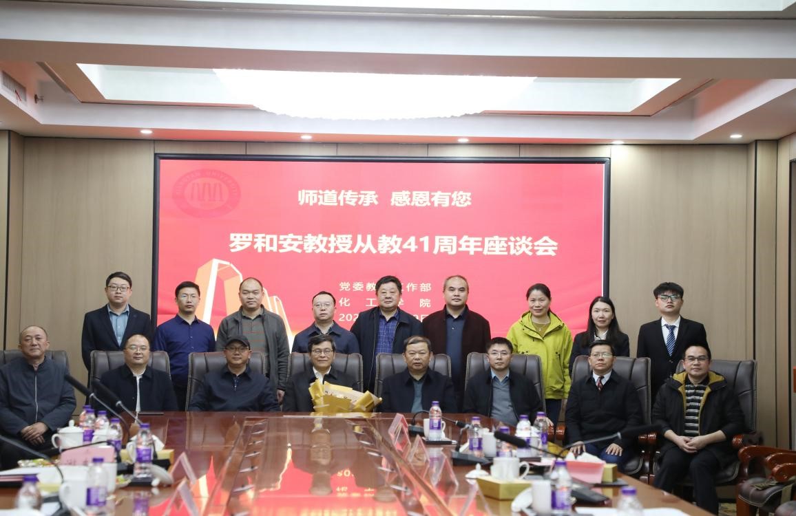 师道传承,感恩有您。11月19日,党委教师工作部、化工学院联合举办罗和安教授从教41周年座谈会,深情回顾罗和安教授从教41年来为学校、学院发展所做出的突出贡献,学习传承他“忠诚、敬业、奉献、坚守”的扎根精神。校党委副书记肖志伟、副校长刘金刚,党政办、教师工作部、发展规划与学科建设处、人事处等部门主要负责人,化工学院师生代表参加座谈会。