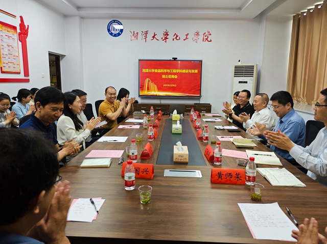 报告会结束后,单杨院士参加化工学院组织的食品科学与工程学科建设与发展院士咨询会。食品学科负责人汇报了食品学科相关情况,单杨院士对湘大食品学科的建设给与了充分肯定,对食品学科的建设和发展提出了宝贵建议,并与与会人员进行了深入交流。副校长刘金刚参加咨询会并作总结讲话。